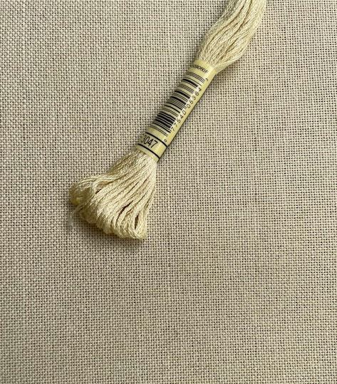 52% cotton, 48% rayon. Similar in shade to DMC 372/3047 (paler in tone).