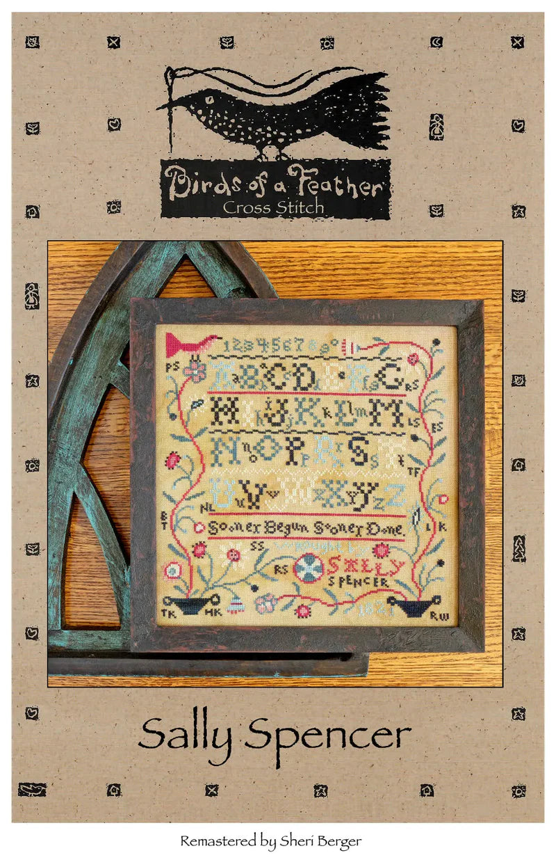 Sally's sampler is filled with beautiful blues and reds. She chose whimsical flowers and a folk art bird to keep an eye on everything. Her wise advice is also stitched into her sampler: Sooner begun, sooner done.