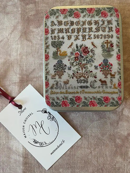 These beautifully illustrated sewing necessities are decorated with iconic reproduction samplers from Reflets de Soie.